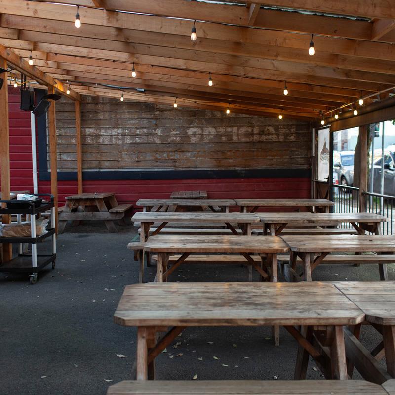 Great patio, very open. Easy ordering without having to go inside. Had pulled pork sammy and it was really good, nice and spicy with a hint of sweetness. Just like me.